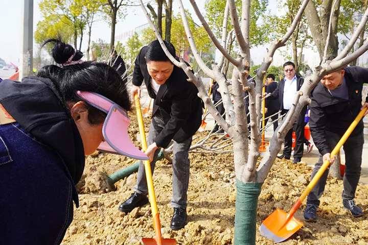 揮鍬鏟土、扶苗填壓、培土澆水……大家分為三人一組,通力合作,配合默契,種下一棵棵象征生機(jī)與希望的苗木。經(jīng)過(guò)一番辛苦勞作,一株株樹(shù)苗列成整齊的隊(duì)伍,迎著和煦的陽(yáng)光昂首屹立,呈現(xiàn)出一片濃濃的春意。它們將在建設(shè)者的呵護(hù)下蓬勃生長(zhǎng),扮靚城市顏值。